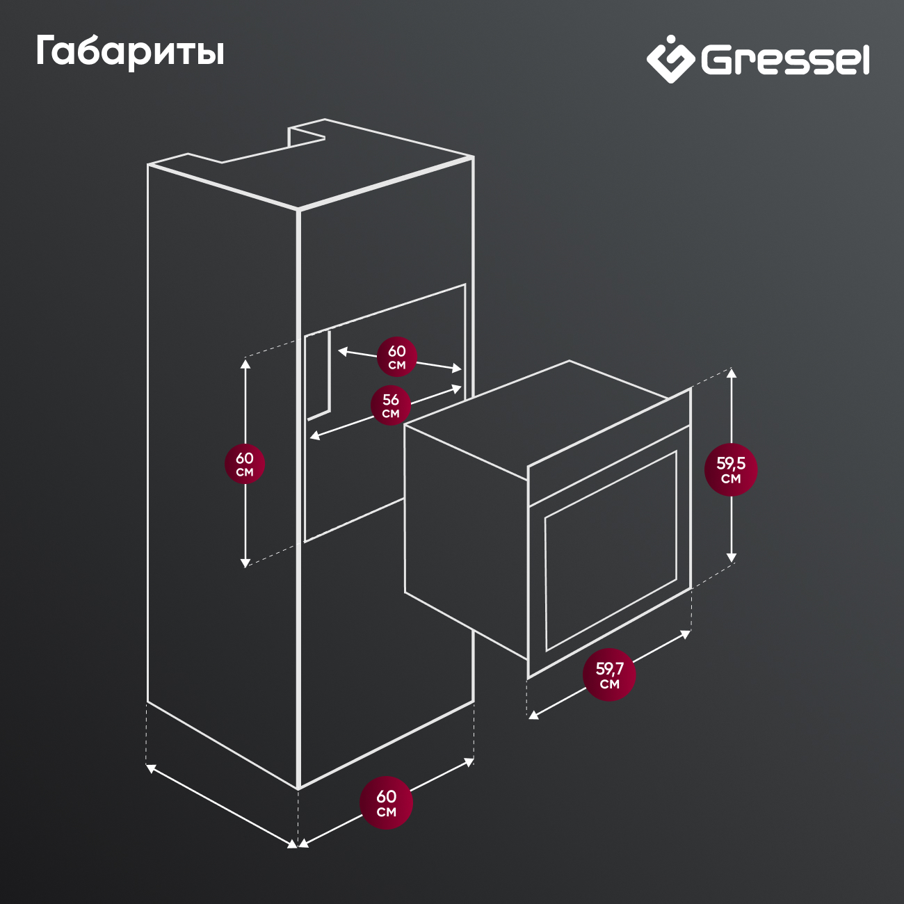 Размеры ШхГхВ, мм - 597x611x595