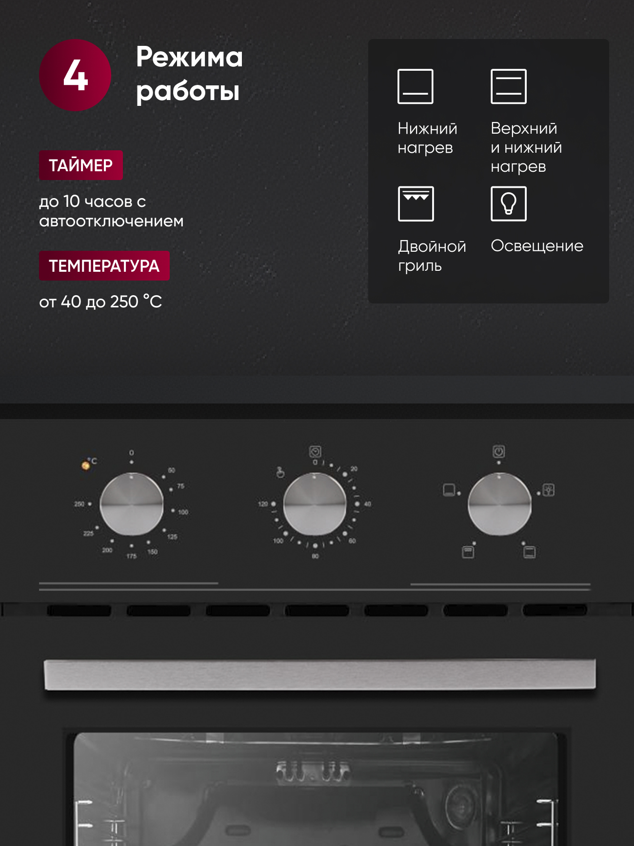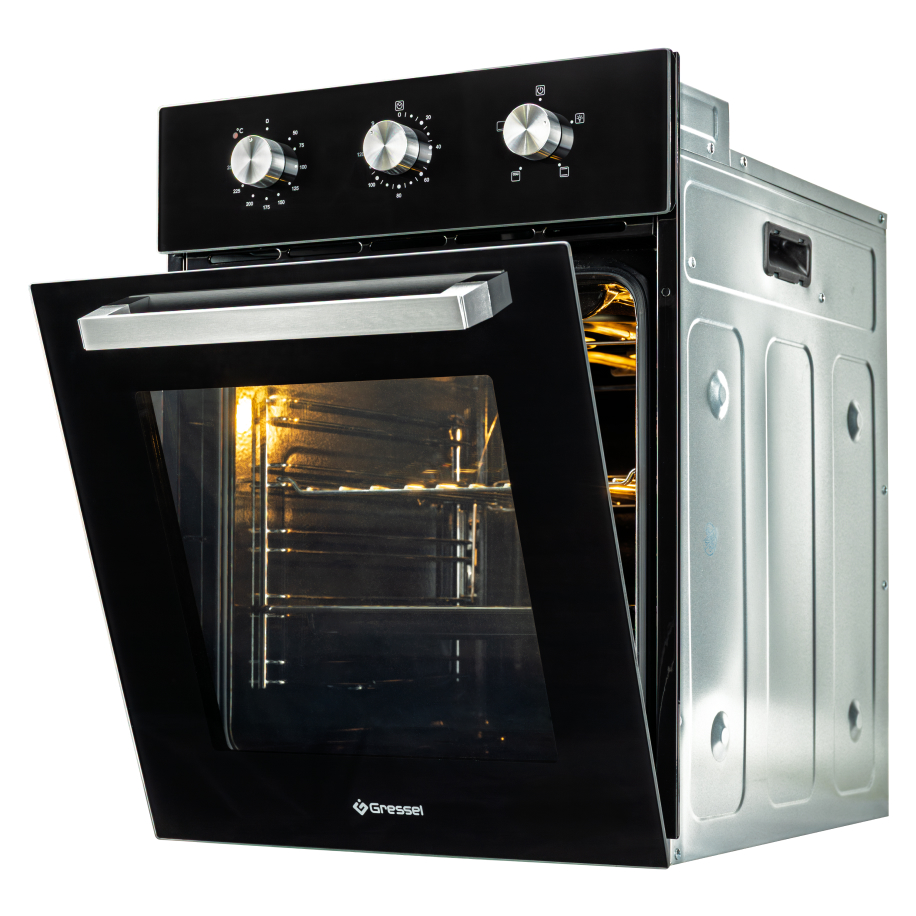Духовой шкаф Gressel U4ES14000 создан для тех, кто хочет получать максимум возможностей даже в компактной кухне. При ширине всего 45 см он вмещает 50 литров — достаточно, чтобы приготовить ужин для всей семьи или порадовать гостей домашней выпечкой. Тройное остекление дверцы и доводчик делают использование комфортным и безопасным: стекло остается прохладным, а дверца закрывается мягко и бесшумно. Четыре режима нагрева — от классического верхнего и нижнего до двойного гриля — позволяют легко подобрать оптимальные условия для любого блюда. Подсветка на основе галогенной лампы дает хороший обзор внутри камеры, а вентилятор охлаждает корпус и защищает мебель. Эмаль легкой очистки упрощает уход: достаточно протереть поверхность после готовки. Стильное черное стекло впишется в современный интерьер, а гарантия 3 года станет дополнительным подтверждением надежности техники.