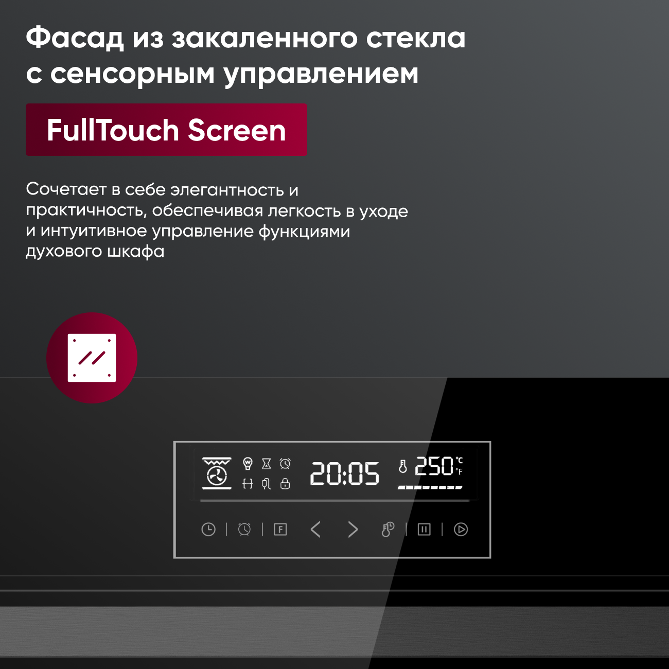 Мощность 3000 Вт и система автоотключения гарантируют безопасность и ускоренный разогрев. Двойное стекло дверцы удерживает высокую температуру внутри, снижая риск ожога. Вы с лёгкостью настраиваете таймер и режимы работы через сенсорную панель, а дисплей отображает ключевую информацию о процессе готовки.