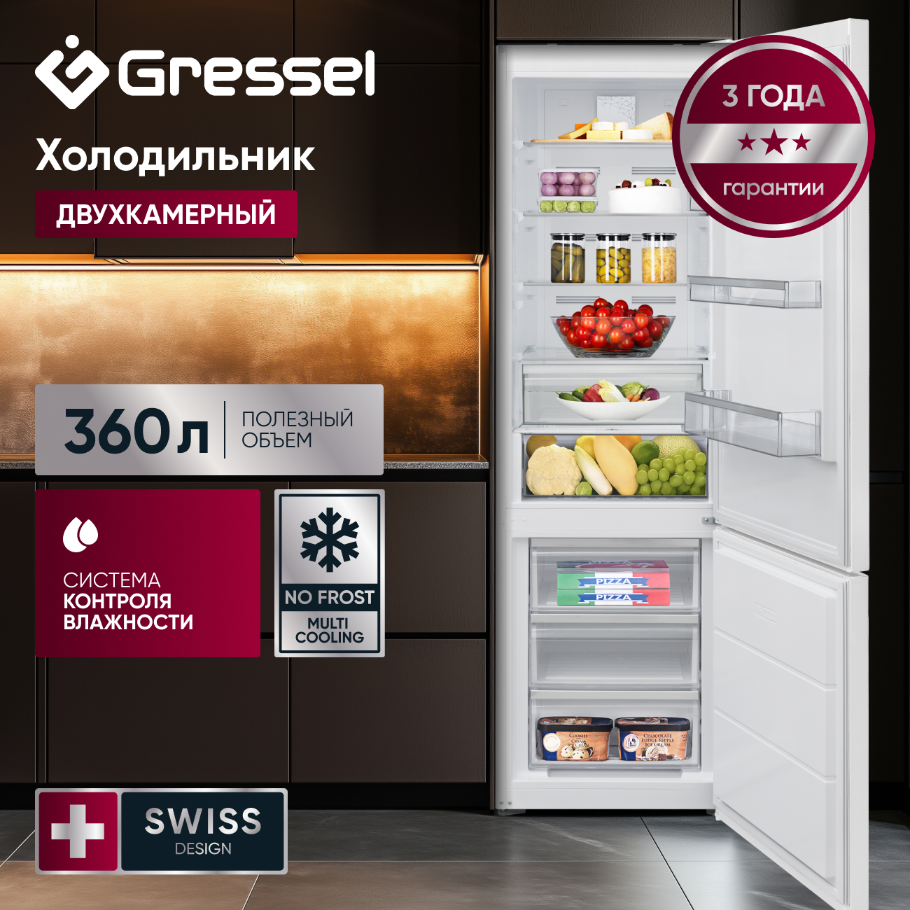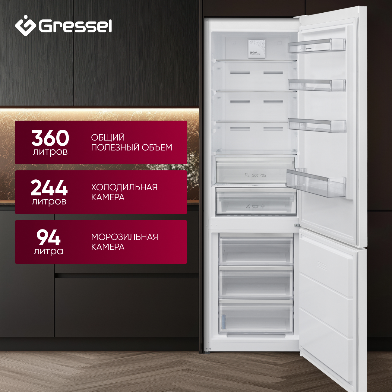 Двухкамерный холодильник Gressel UDW49105: свежесть без компромиссов
