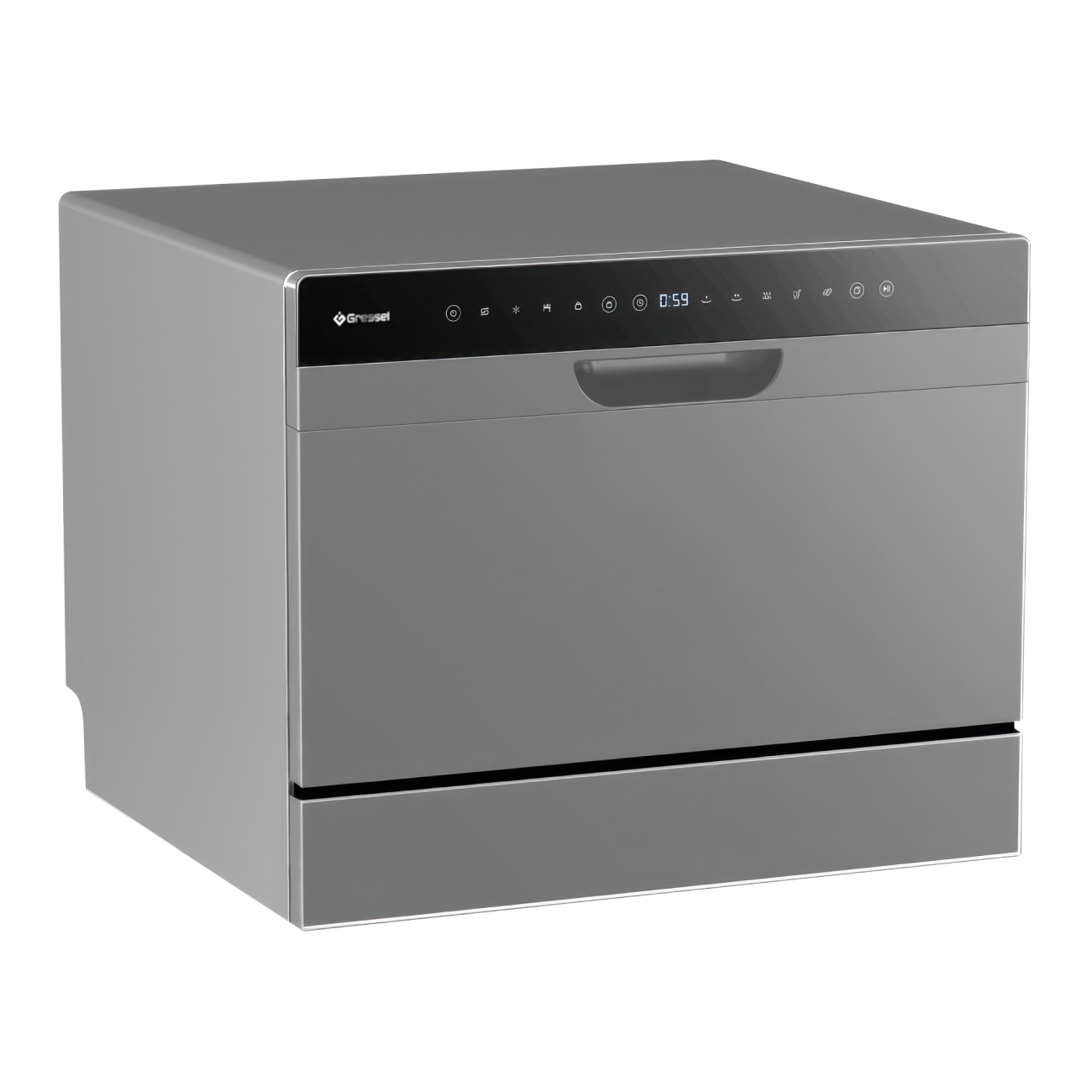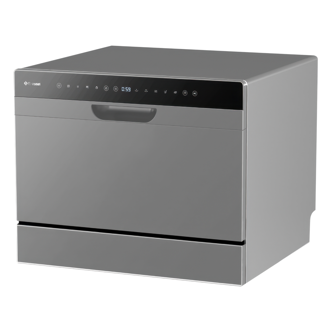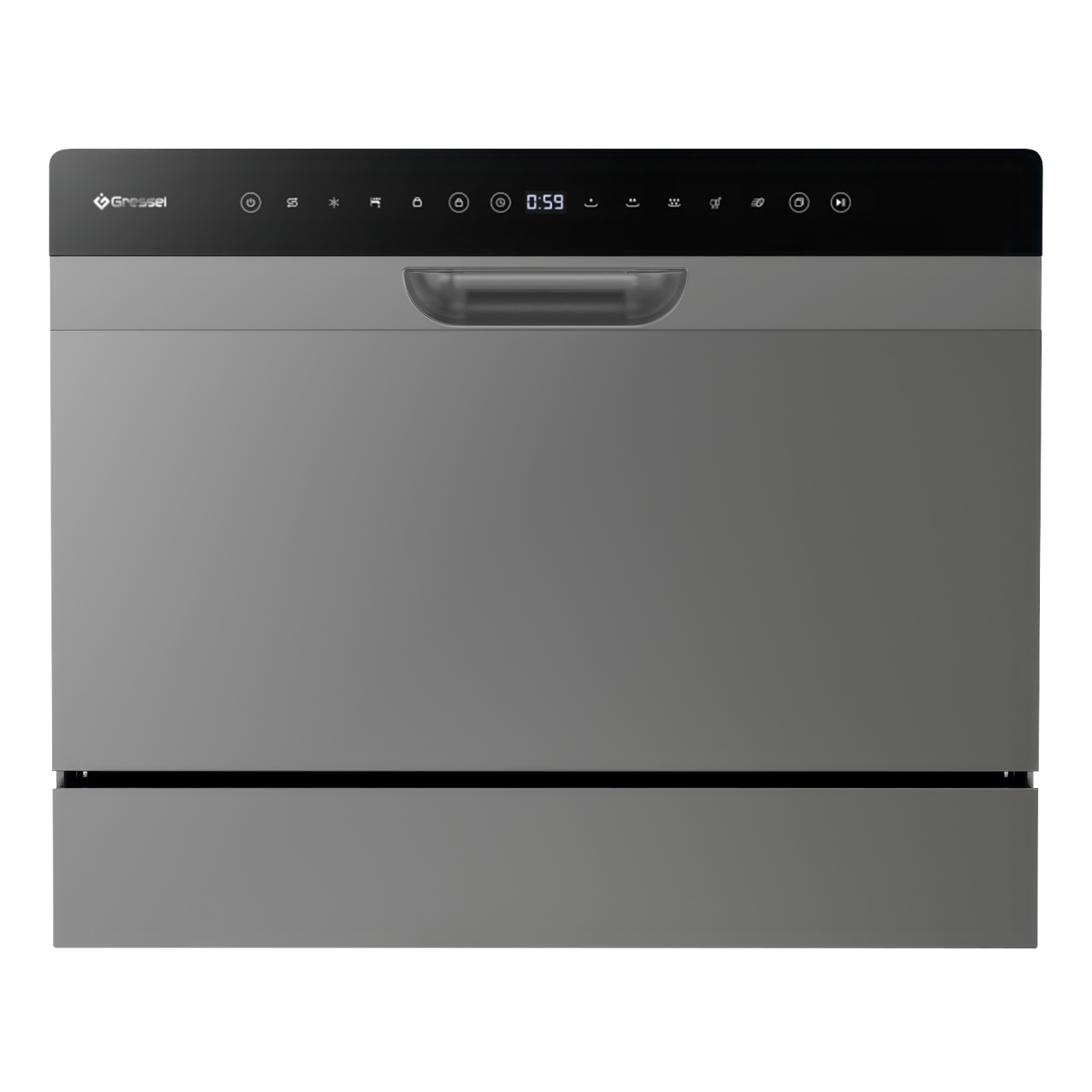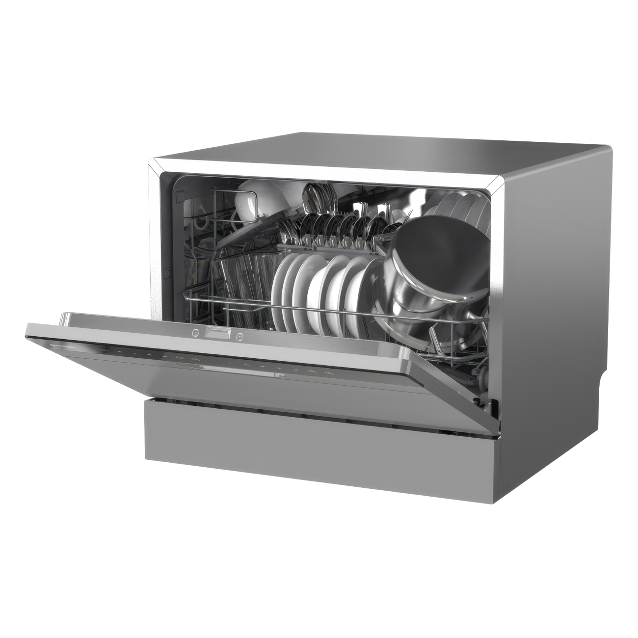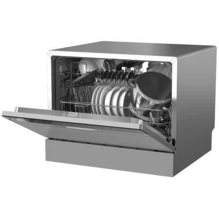 Посудомоечная машина настольная на 6 комплектов посуды. 5 программ: Интенсивная/Нормальная/ЭКО/Стекло/Быстрая Цвет: серый корпус / черная панель управления функции: 1)верхние и нижние распылители 2) смягчитель воды