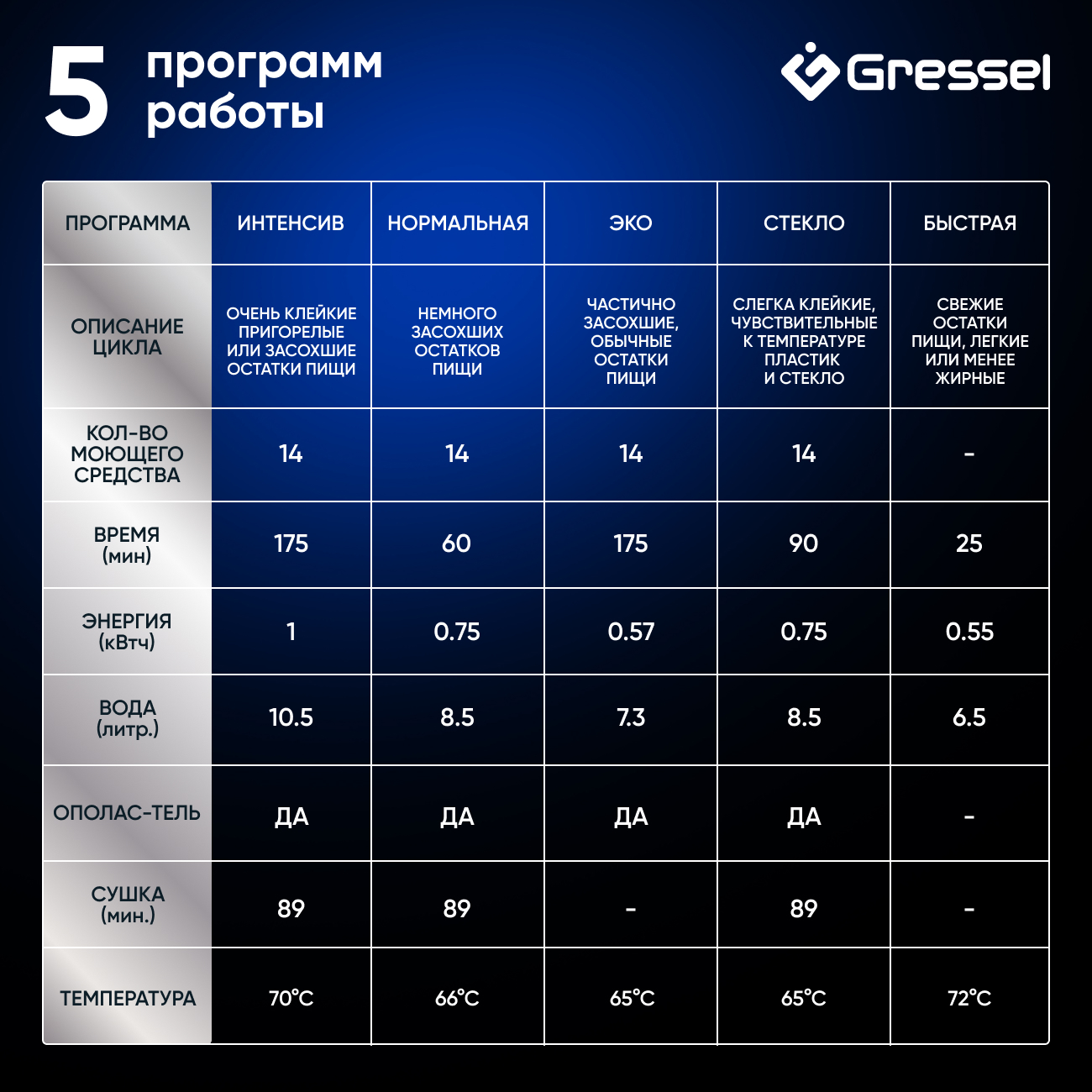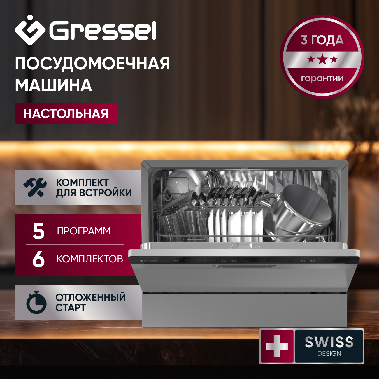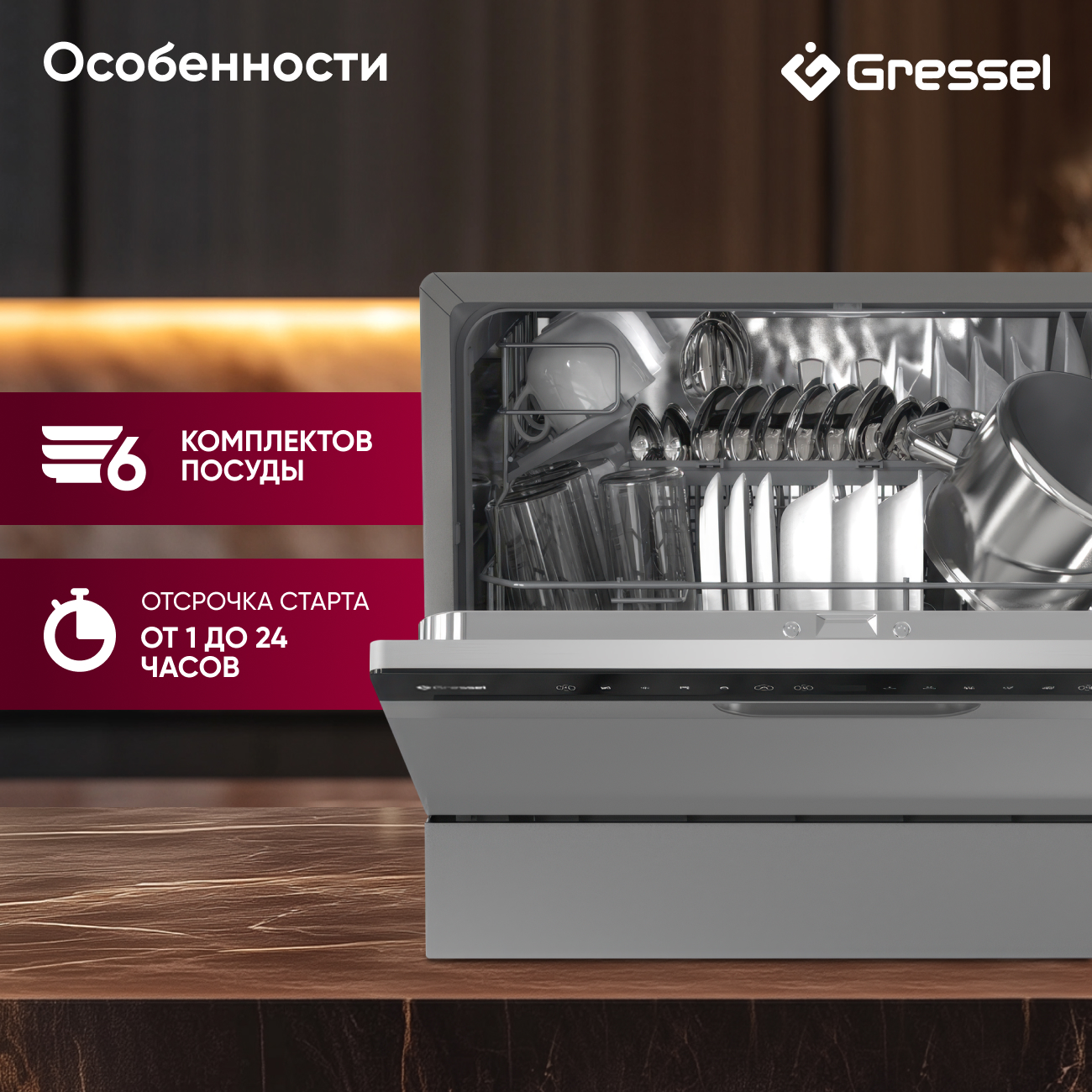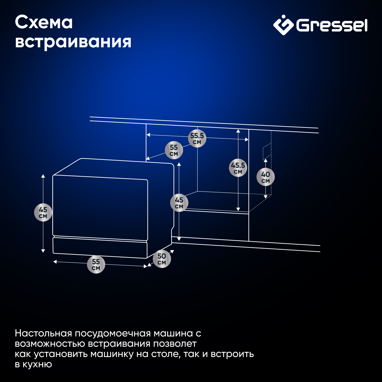 Посудомоечная машина настольная GRESSEL UPM550, 6 комплектов посуды, 5 программ