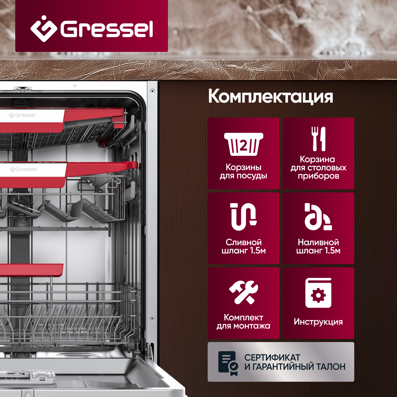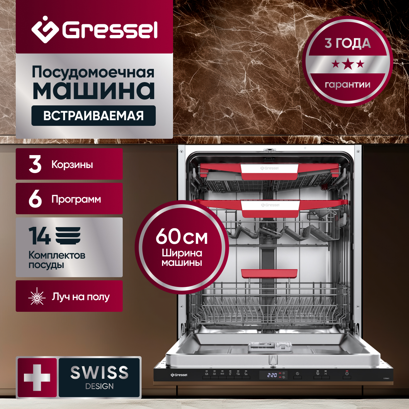 Встраиваемая посудомоечная машина Gressel UBB625 60 см