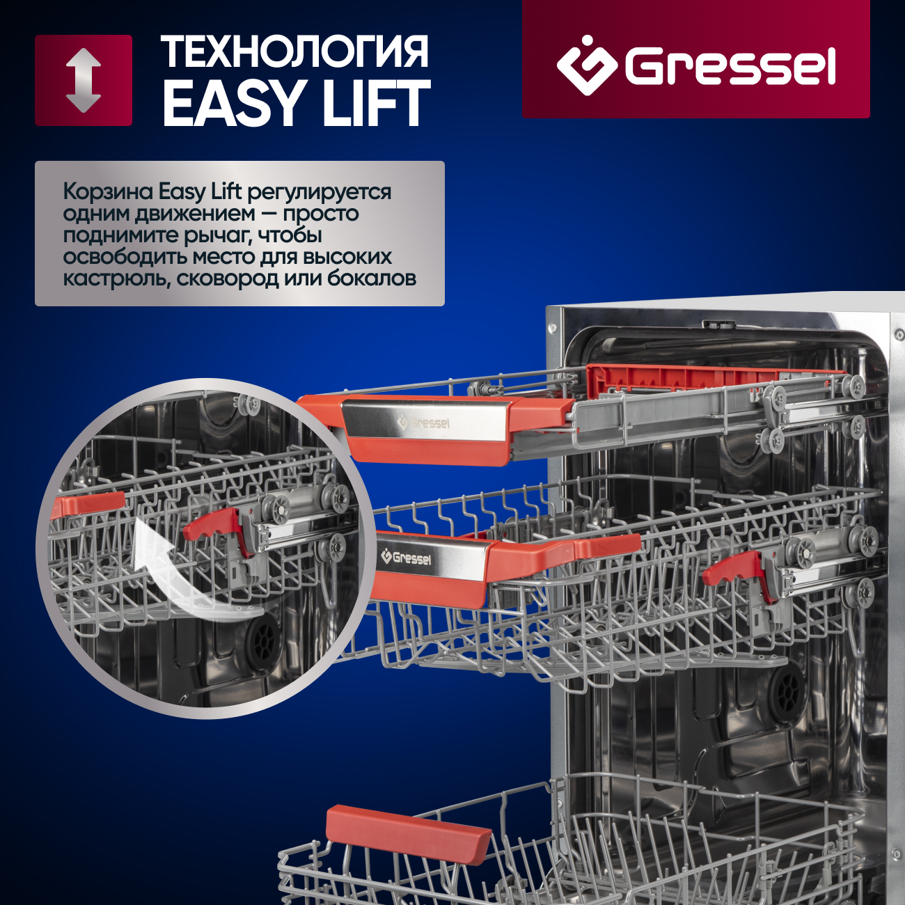 Узкая посудомоечная машина Gressel UBM501 — отличное решение для тех, кто ищет сочетание компактности и вместительности. При ширине 45 см она способна разместить до 10 комплектов посуды, что подойдёт для небольшой семьи или людей, часто принимающих гостей. Машина предлагает 6 программ, включая «Интенсивную» для пригоревших сковород и «Быструю» для лёгкой загрязнённости. «ЭКО»-режим поможет сэкономить на счетах за электричество, а деликатная программа «Стекло» позаботится о хрупких бокалах.